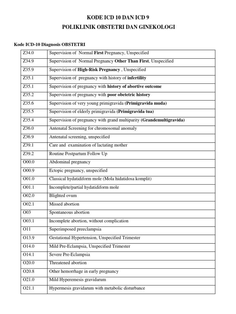 Kode Icd 10 Tersering Di Poliklinik Obstetri Dan Ginekologi Edit