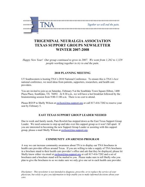 Trigeminal Neuralgia Association Texas Support Groups Newsletter