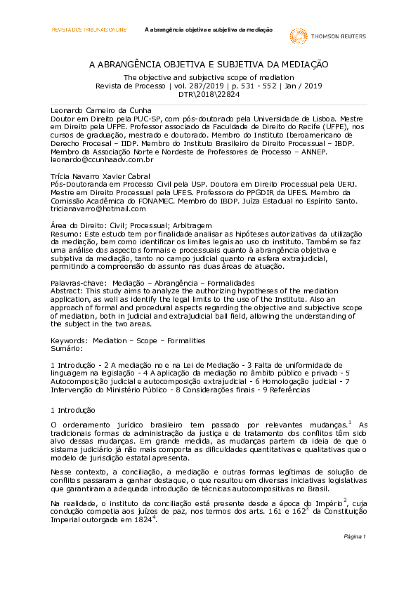 Pdf A Abrangencia Objetiva E Subjetiva Da Mediacao Leonardo