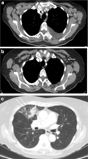 Top Axial Contrast Enhanced Ct Of The Chest Showing Bilateral
