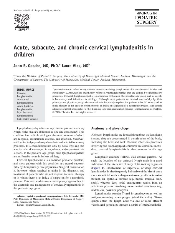 Pdf Acute Subacute And Chronic Cervical Lymphadenitis In