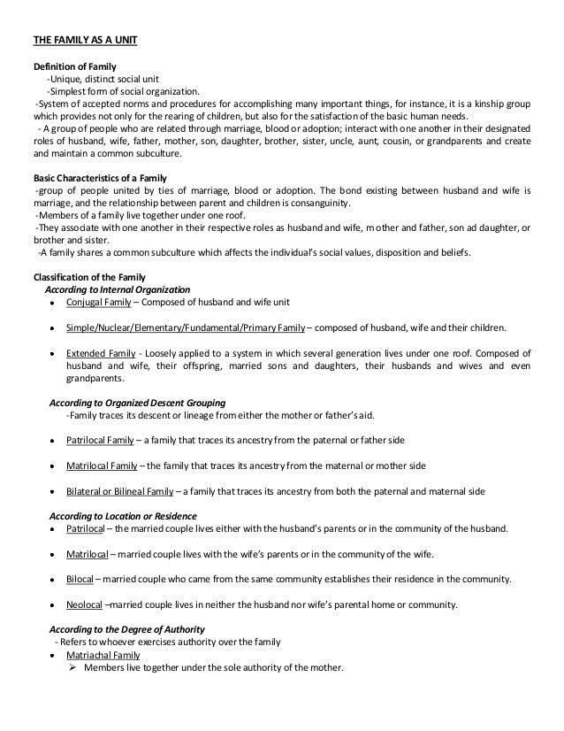 The Family As A Unit