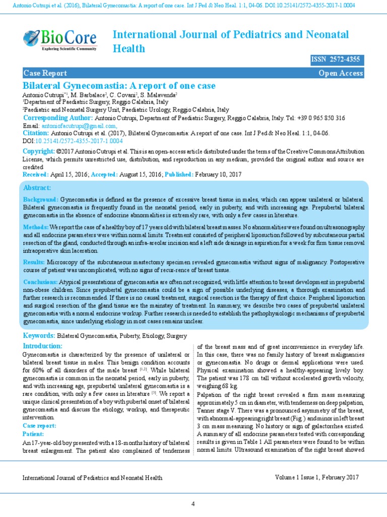 Bilateral Gynecomastia A Report Of One Case Reproductive System