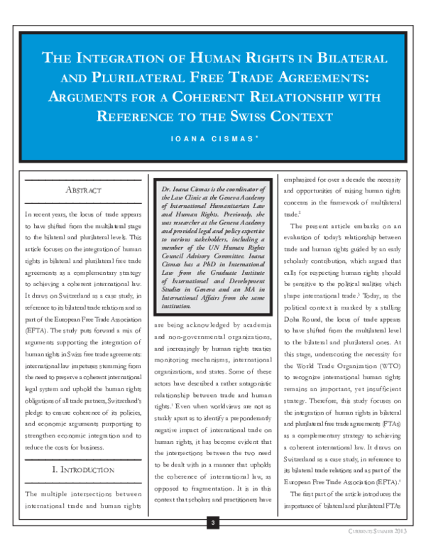 Pdf The Integration Of Human Rights In Bilateral And Plurilateral