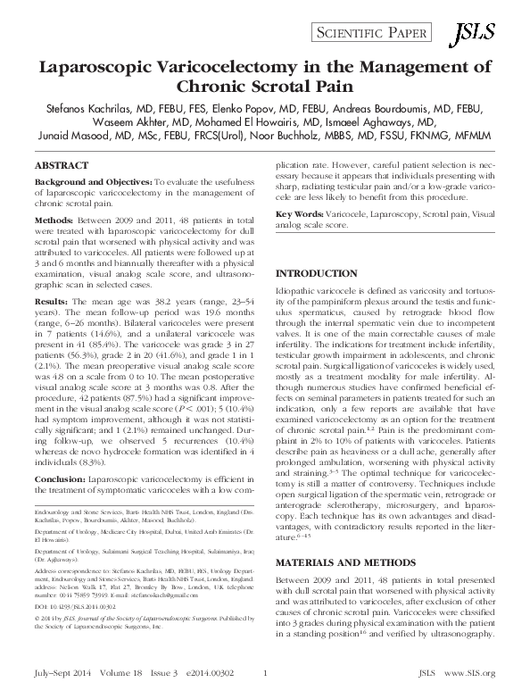 Pdf Laparoscopic Varicocelectomy In The Management Of Chronic Scrotal Pain Andreas Bourdoumis Stefanos Kachrilas