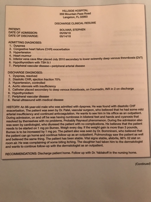 Solved Hillside Hospital 359 Mountain Pass Road Langston