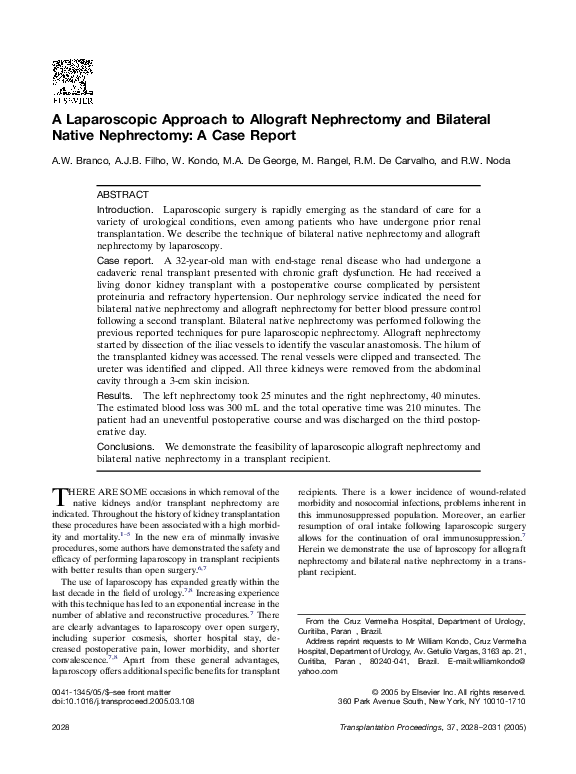 Pdf A Laparoscopic Approach To Allograft Nephrectomy And