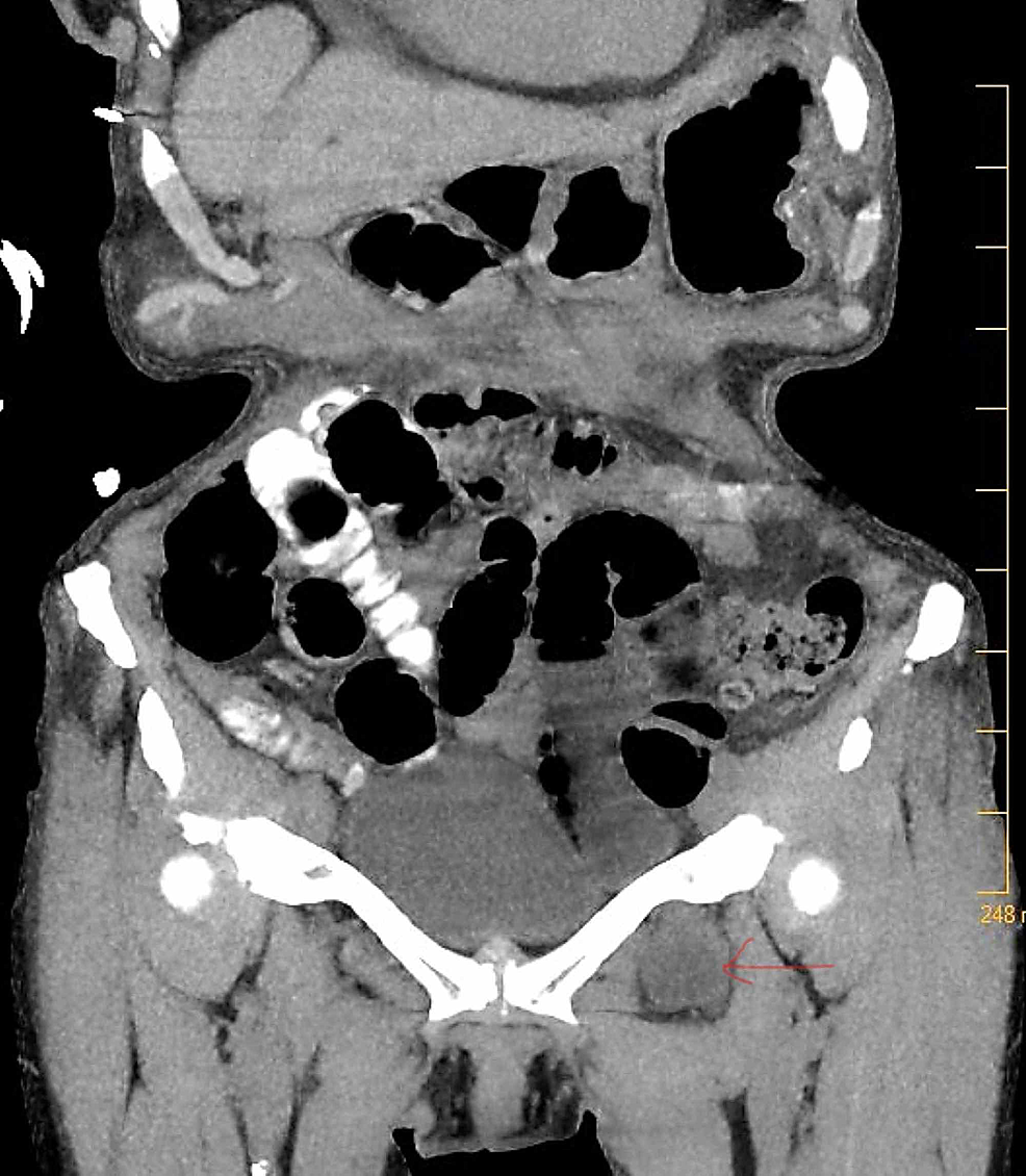 Bilateral obturator hernia. Delay in its diagnosis causes poor prognosis with increased morbidity. It is often seen in elderly thin females who present with signs of small bowel obstruction. Obturator hernias are not visible and often not palpable 1. Obturator herniae were evident with puckering of peritoneum bilaterally.