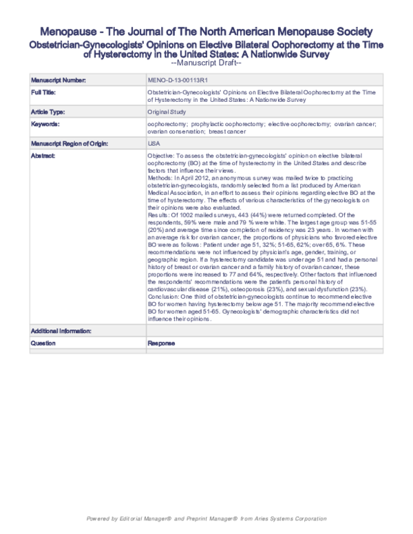 Pdf Ovarian Conservation Versus Bilateral Oophorectomy At The