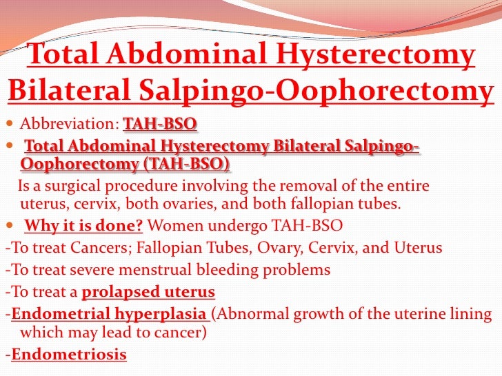 Tah Bso Total Abdominal Hysterectomy Bilateral Salpingo Oophorectomy