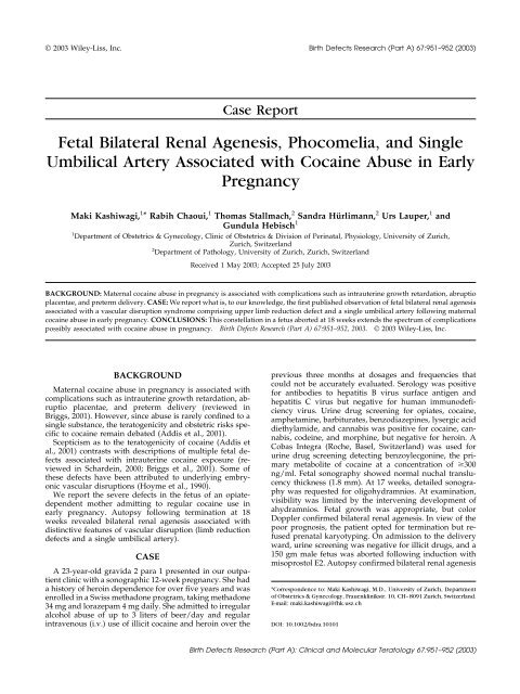 Fetal Bilateral Renal Agenesis Phocomelia And Geburtshilfe