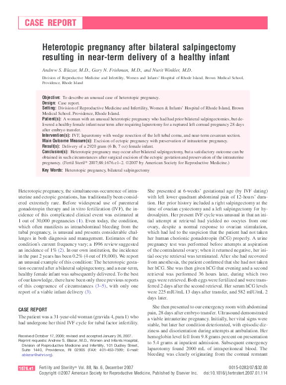 Pdf Heterotopic Pregnancy After Bilateral Salpingectomy Resulting