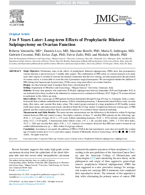 Pdf Bilateral Salpingectomy To Reduce The Risk Of Ovarian