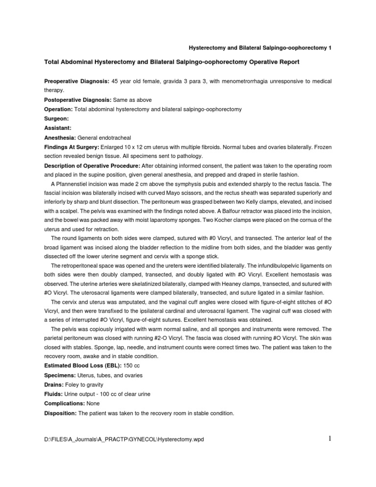Hysterectomy And Bilateral Salpingo Oophorectomy Pdf Document