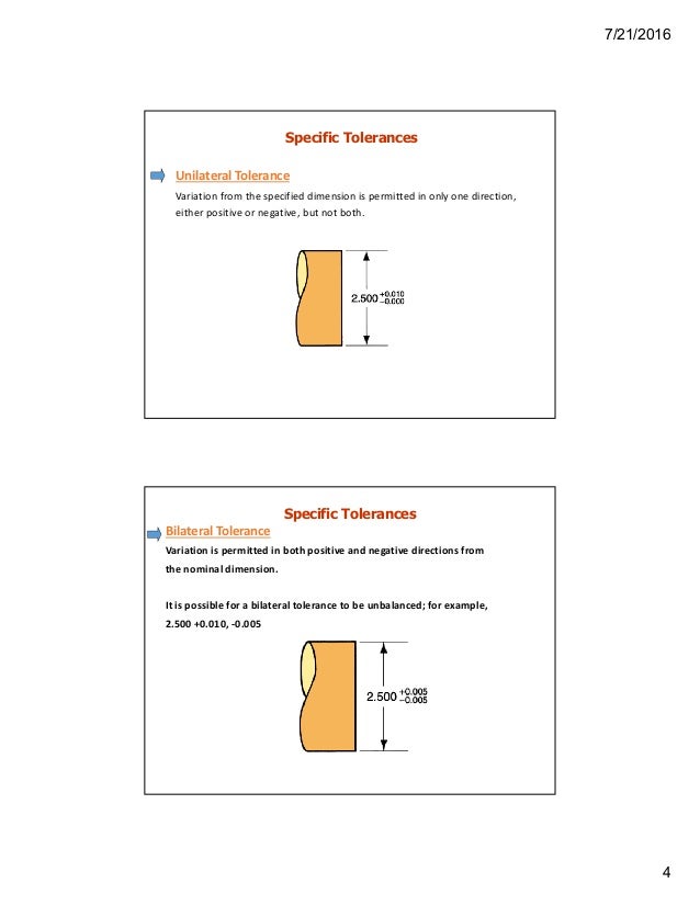 Unilateral And Bilateral Tolerances