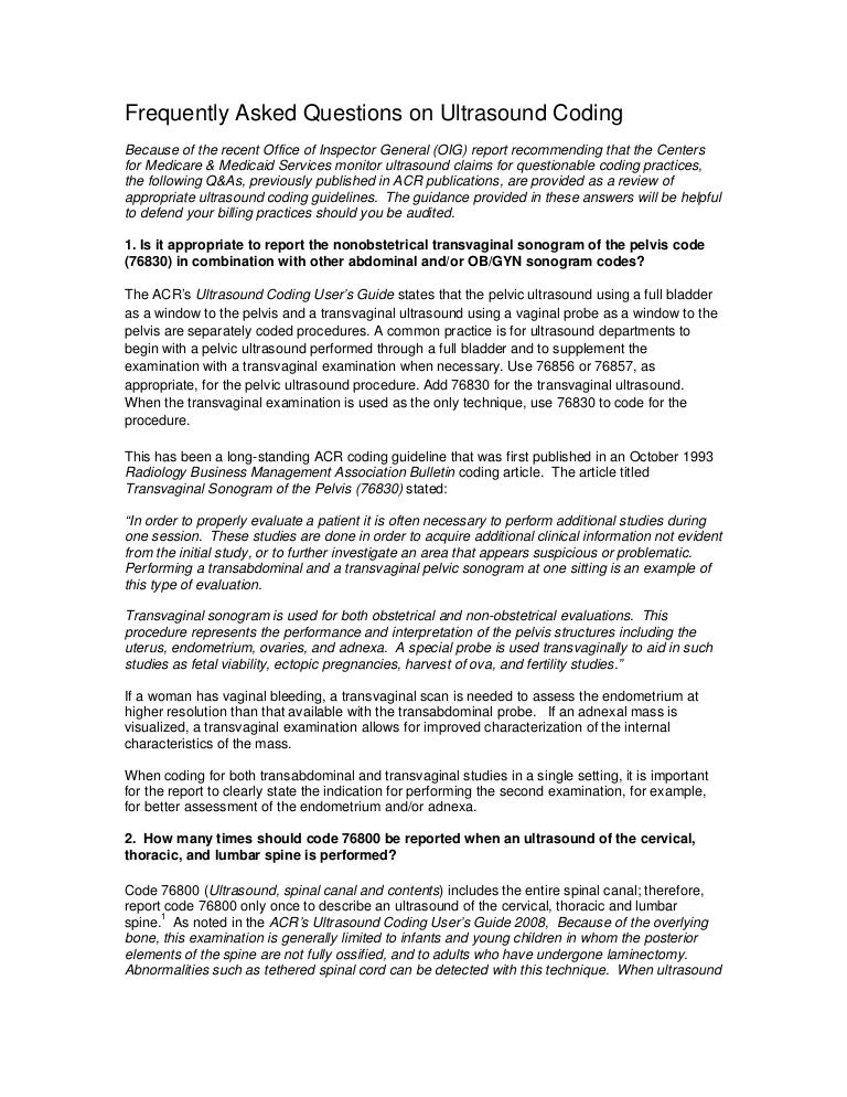 Ultrasound Coding Questions By Acr Aug2009
