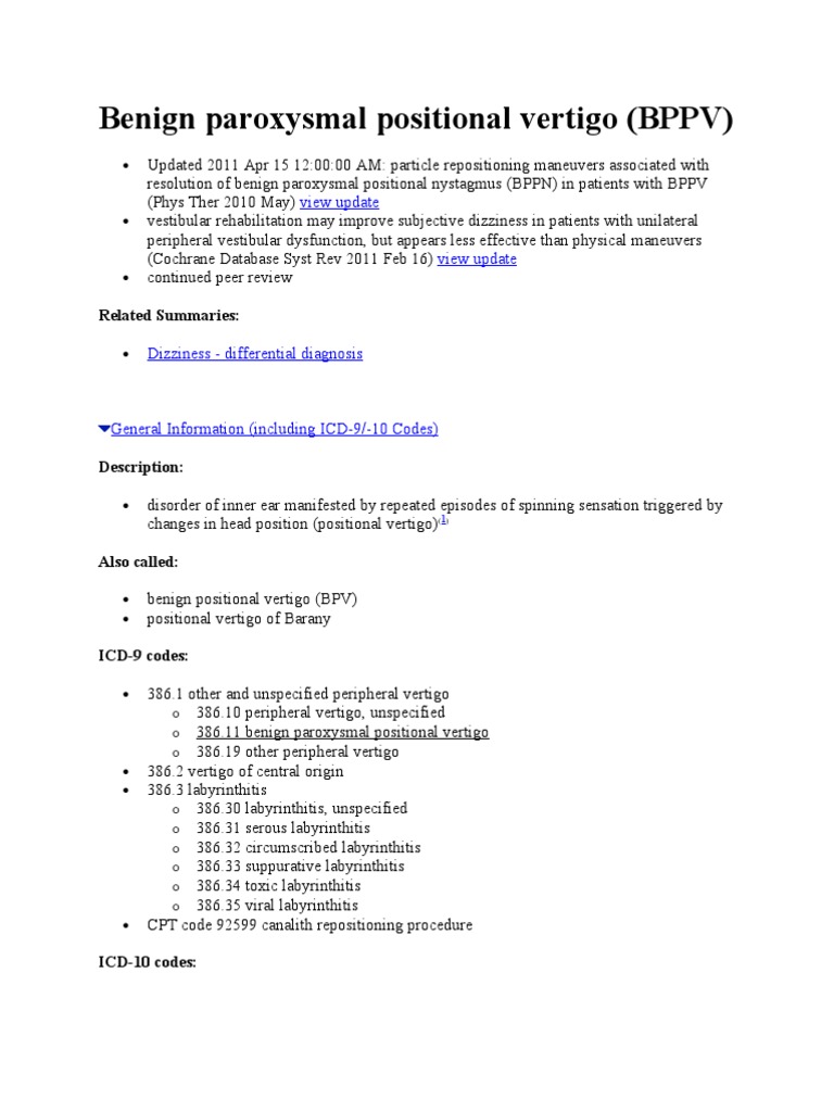 Benign Paroxysmal Positional Vertigo Vertigo Vestibular System