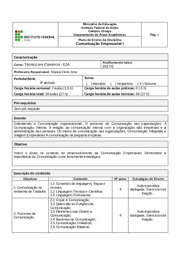 Pdf Comunicacao Empresarial I Caracterizacao Curso Tecnico Em