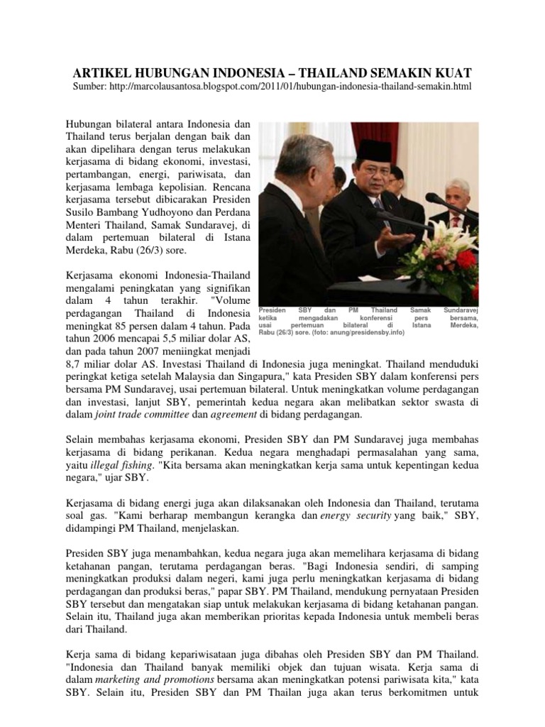 Contoh Hubungan Bilateral Indonesia Dengan Thailand