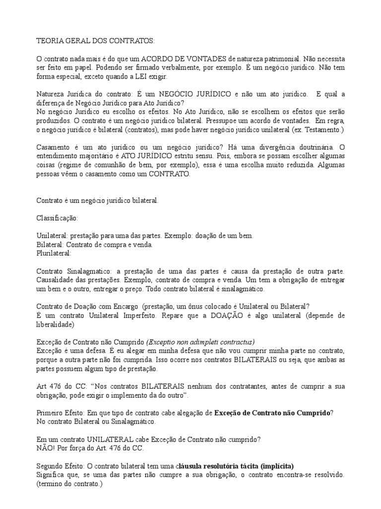 Teoria Geral Dos Contratos Resumos Lei Das Obrigacoes
