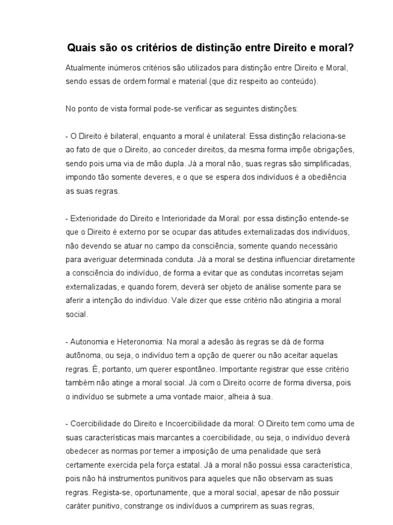 Quais Sao Os Criterios De Distincao Entre Direito E Moral