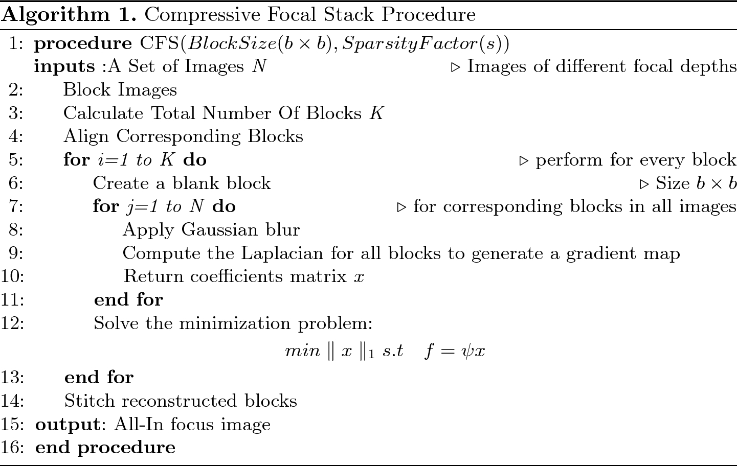 Evaluating Focal Stack With Compressive Sensing Springerlink