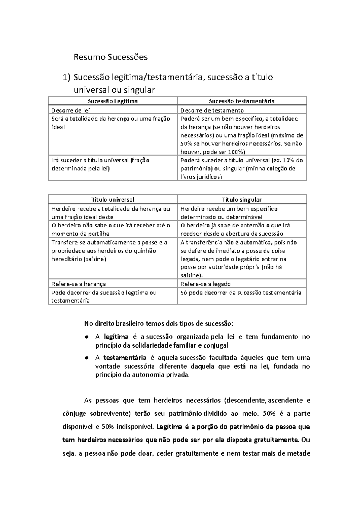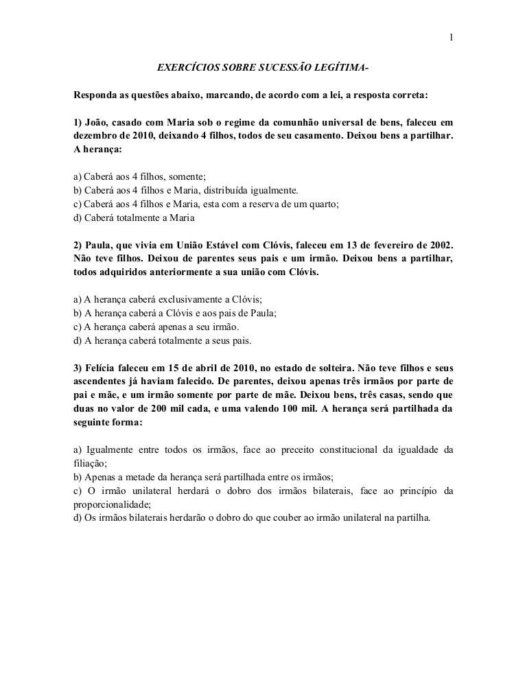 Exercicios Sobre Sucessao Legitima