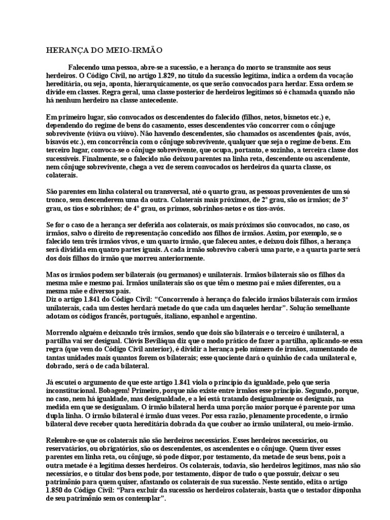 A Ausencia De Herdeiros Necessarios E De Conjuge Sobrevivente Chama A Sucessao Os Colaterais Ate 4º Grau Pdf Free Download