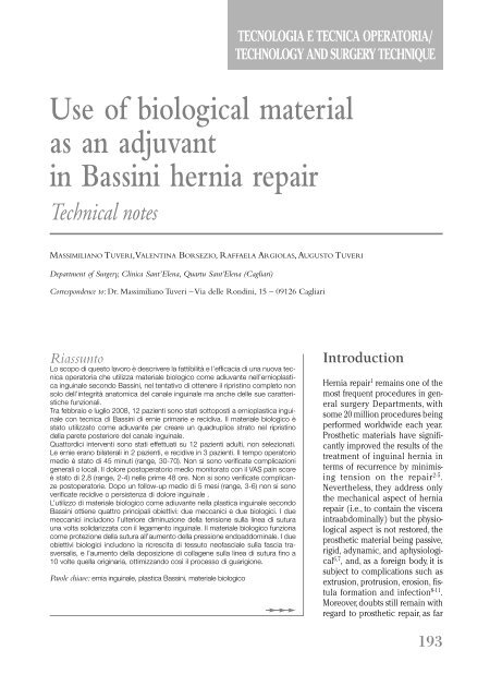 Use Of Biological Material As An Adjuvant In Bassini Hernia Repair