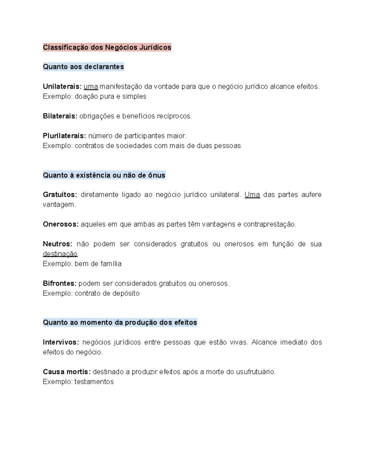 Classificacao Dos Negocios Juridicos Dir4002a Ucs Studocu