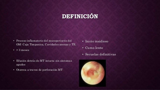 It occurs when the area behind the eardrum called the middle ear becomes inflamed and infected. Acute otitis media aom is a painful type of ear infection. Causa daño crónico o permanente al oído. Otitis media with effusion ome can occur if the tube clogs.