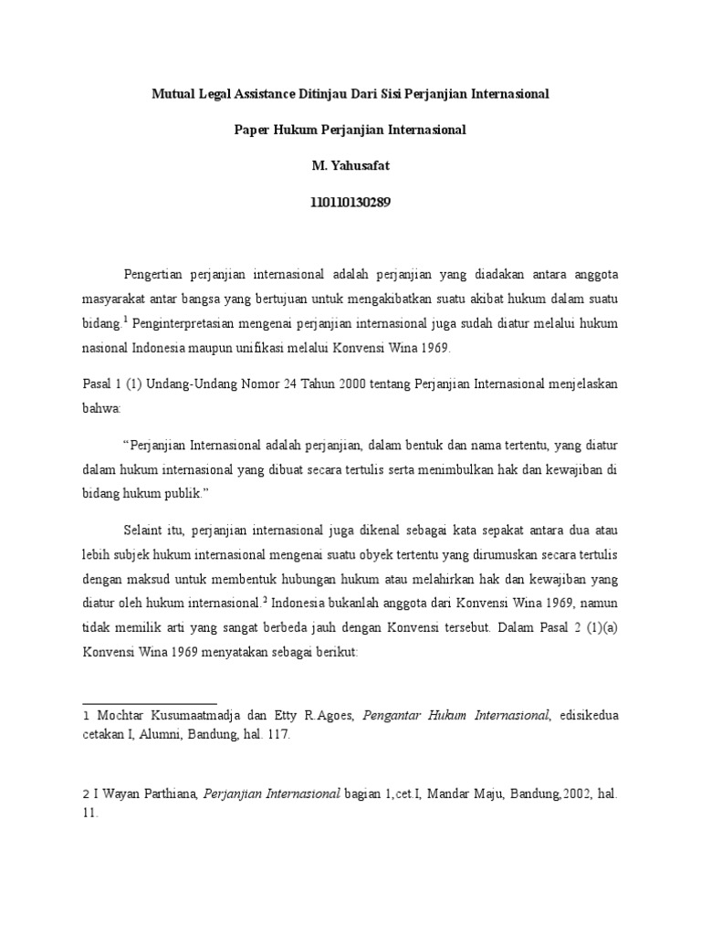 Mutual Legal Assistance Dalam Perjanjian Internasional