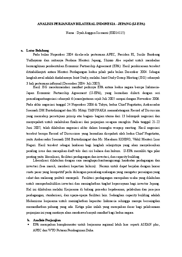 Doc Analisis Perjanjian Bilateral Mou Indonesia Jepang Ij Epa