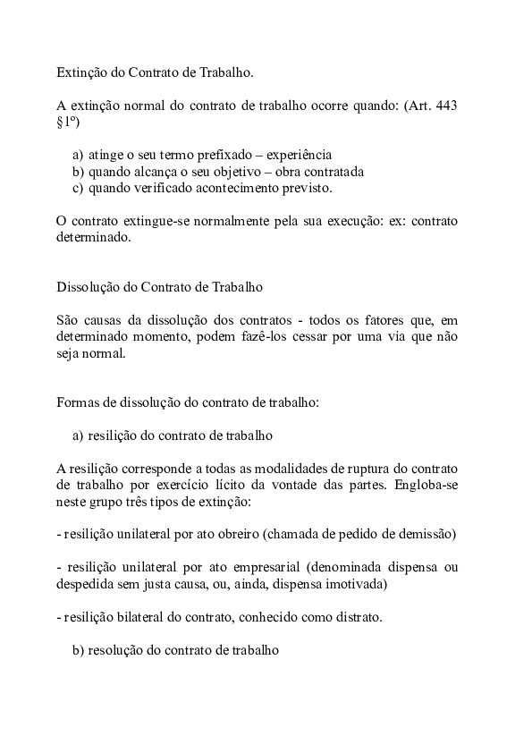 Doc Materia Prova Trabalho Extincao Do Contrato De Trabalho Ivo