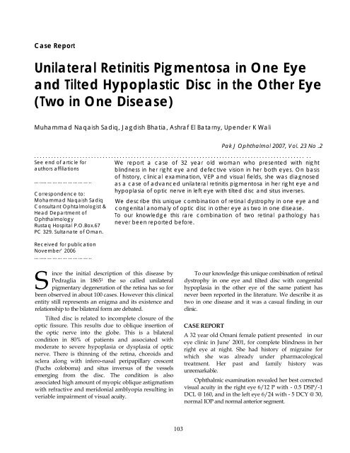 Case 49 Unilateral Retinitis Pigmentosa Eyerounds Org