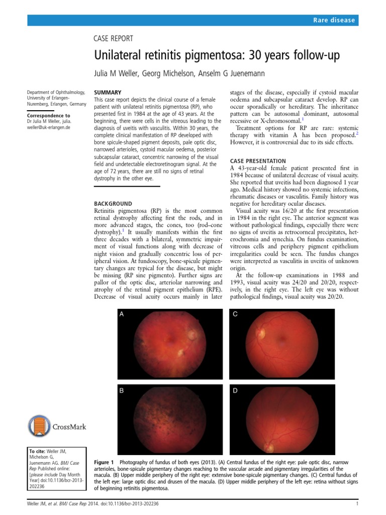 Unilateral Retinitis Pigmentosa Medical Case Canadian