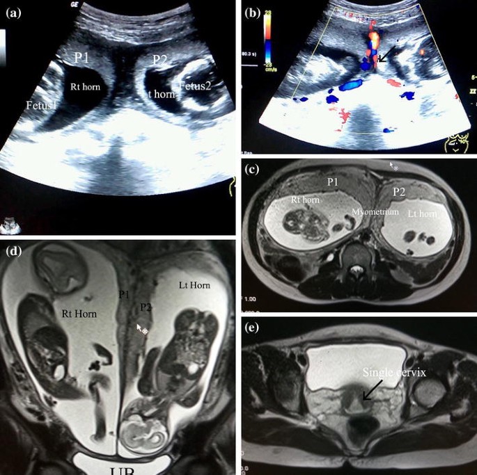 Split uterus twins. Sometimes they share a single cervix and a single vagina. A split uterus or a bicornuate uterus as it is known in medical terminology is an uncommon anatomic abnormality of the uterus which occurs as a disruption of the normal fetal development of the uterus. It is a rare case and usually an embryo transfer or in vitro fertilization is recommended. Bicornuate uterus twins are twin pregnancies in the separate horns of the uterus.