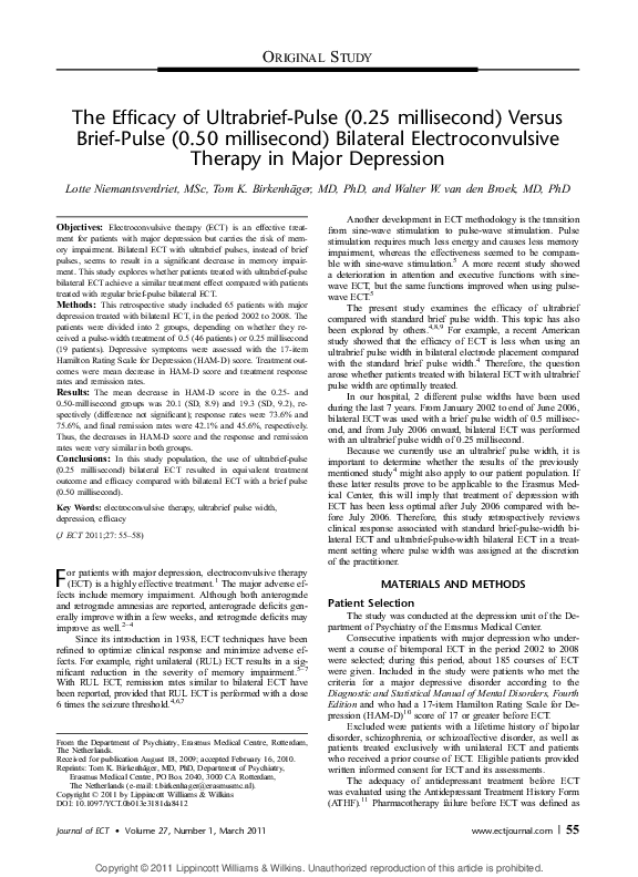 Pdf A Review Of Ultrabrief Pulse Width Electroconvulsive Therapy