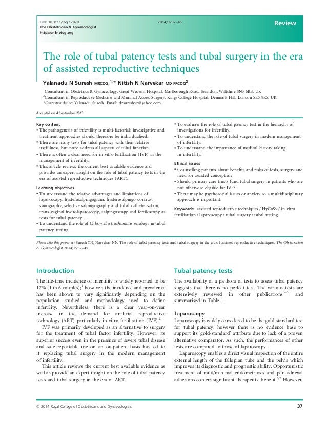 The Role Of Tubal Patency Tests And Tubal Surgery In The Era Of